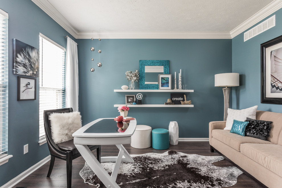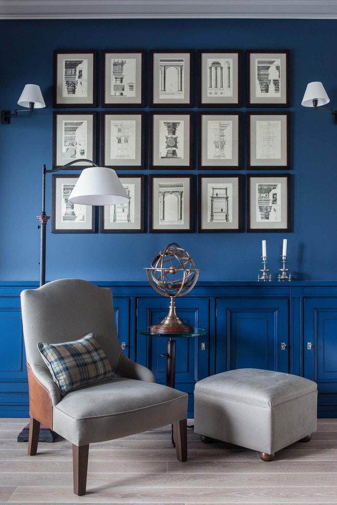 Many office premises are decorated in this particular tone; only variations, the play of light, can change. If you choose dark blue, then the attitude towards it changes dramatically, it personifies excitement, mystery. This color scheme is chosen by individuals who prefer loneliness, childless couples.