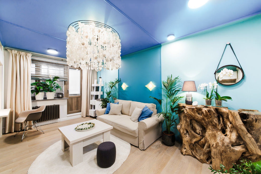 The human eye has long been accustomed to all variations of this color. He just can't get bored. Psychologists say that a morally weary individual will go exactly where the blue color is present in the interior. They believe that he personifies silence, lightness, calm.