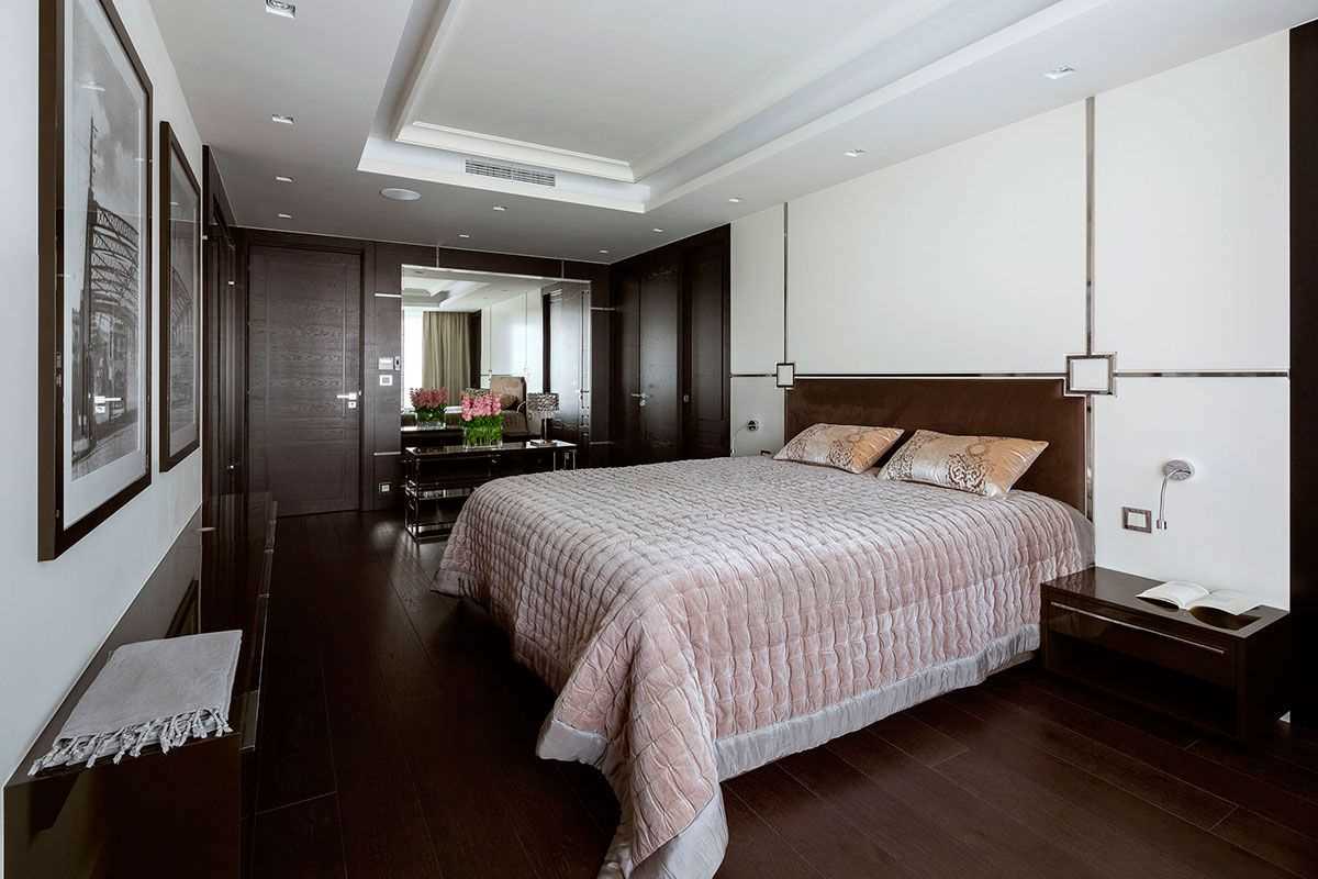 - Opposite surfaces are attracted, giving a different sensation. Such tinting can be suitable for any room, depending on what result you want to get in the end. For a high apartment, a dark floor is ideal, in tone with the ceiling, cream walls. The low rooms will be raised by a white glossy ceiling and a light floor with rich lateral planes.