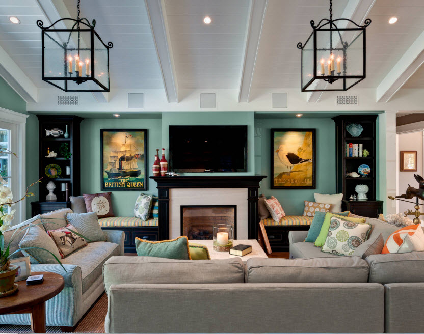 - Pastel green and blue. They are as close as possible to the palette with menthol shades. It is not surprising that such a combination produces a rather harmonious and eye-pleasing mix. It evokes the sensation of 100% summer - with a turquoise sea, a warm sun and a fun holiday.