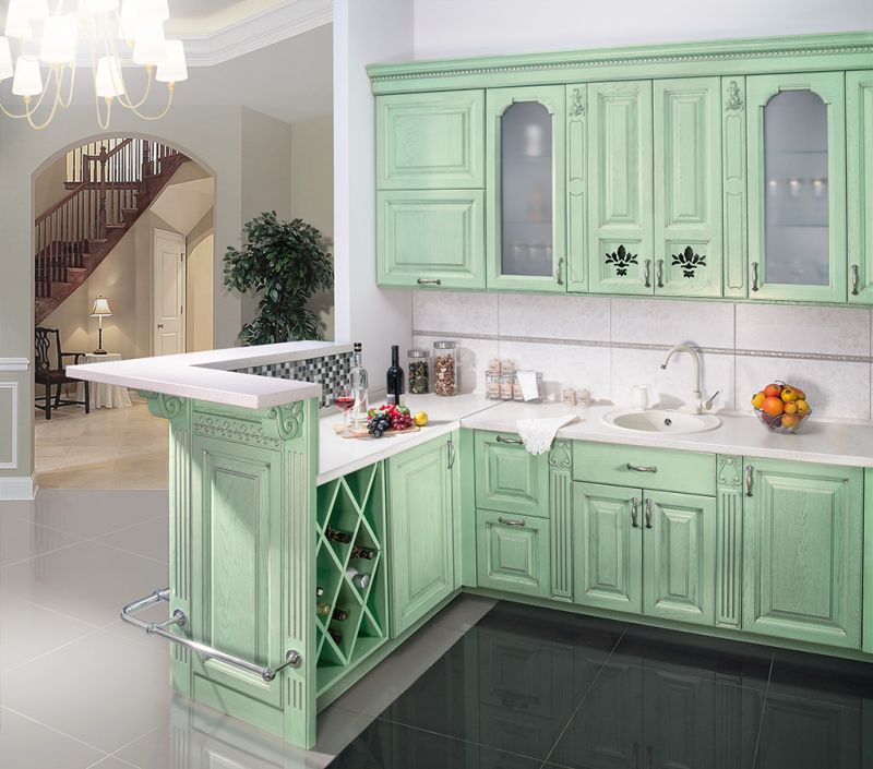 - Delicate mint. The color is very soft, even airy. It is so light that it almost becomes a bluish undertone of white.