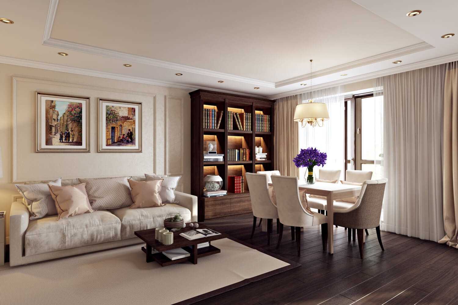 A gentle combination has a calming effect, more often used in the design of the living room interior. The room becomes bright, comfortable and spacious. |