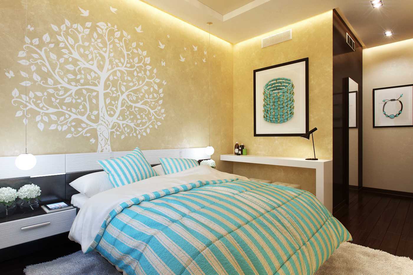 The beige color in the bedroom interior will create a pleasant and warm atmosphere.