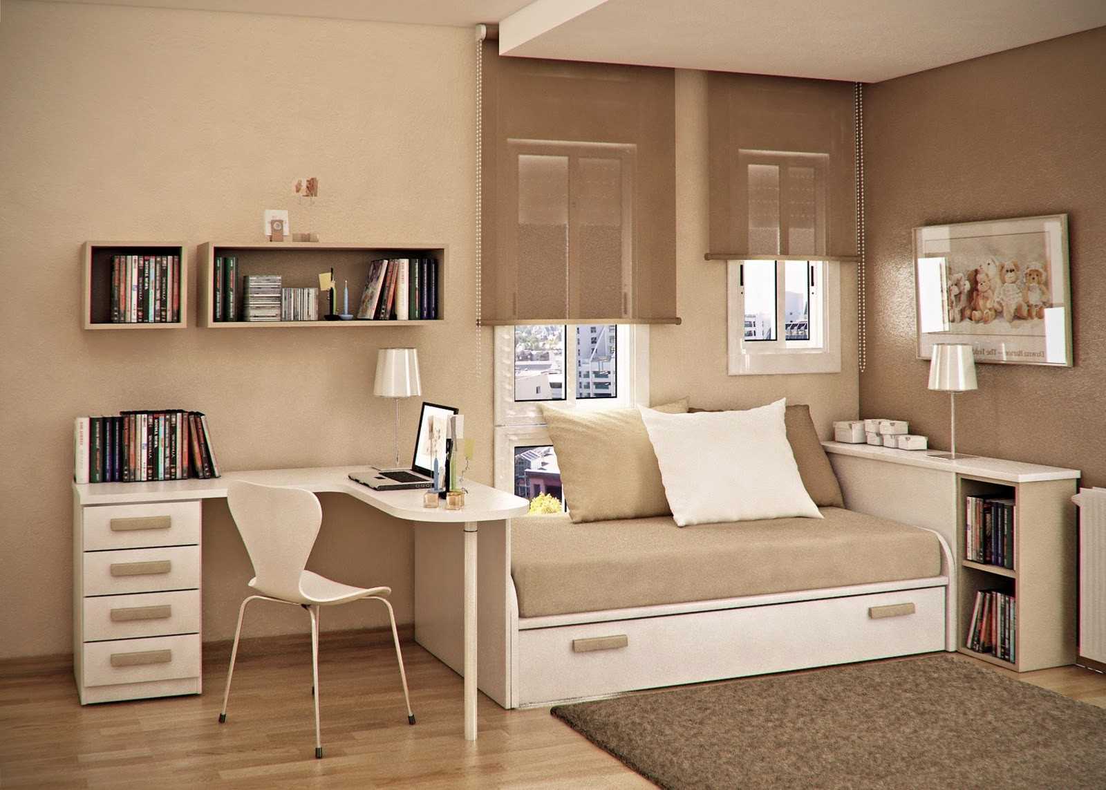 Brown is the best choice for a bedroom interior. The combination contributes to calm, adds softness to the interior. These colors are suitable for the design of a workspace, such as an office. |
