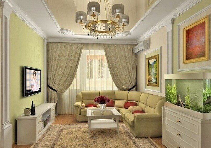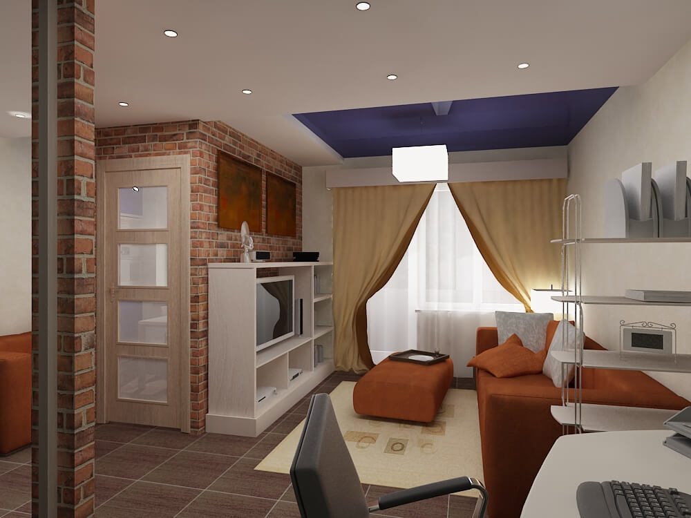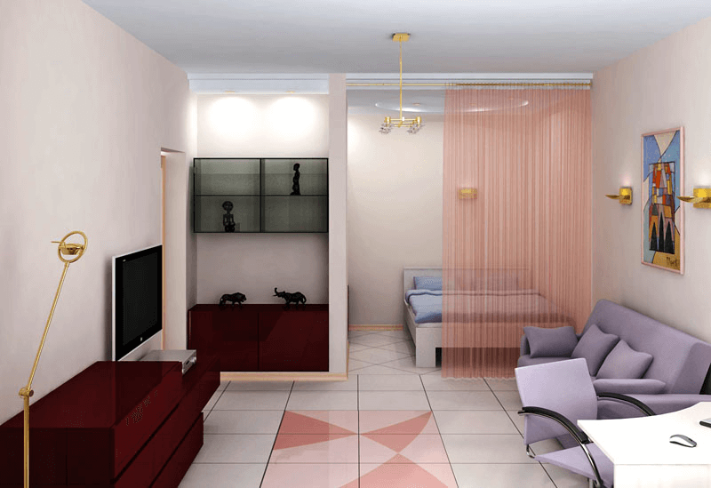 | Proper use of decorative elements and textiles | Do not overload the interior for a one-room apartment with statuettes and caskets of different sizes. Windows are best decorated with thin, lightweight fabrics or roller blinds. |