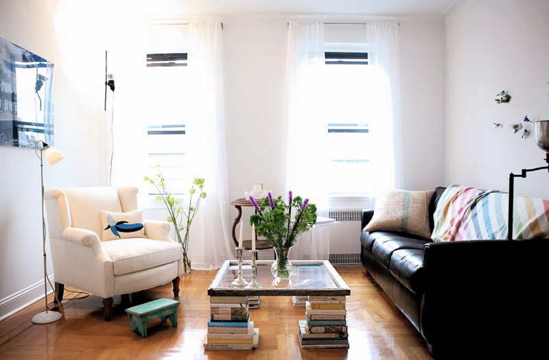 In a small room, floating or translucent furniture will look lighter than a full and massive one.