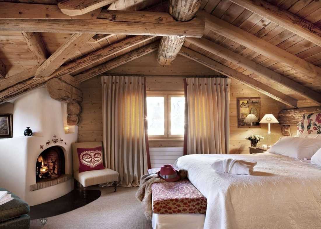 The historically established characteristic feature of the direction is the active use of wooden materials. The walls, ceiling and floor are sheathed with boards, the furniture is made of the same material. Often used chests with traditional ornaments. In the modern version of the style, rafters and beam ceilings are required.