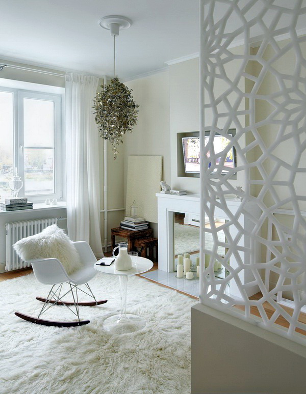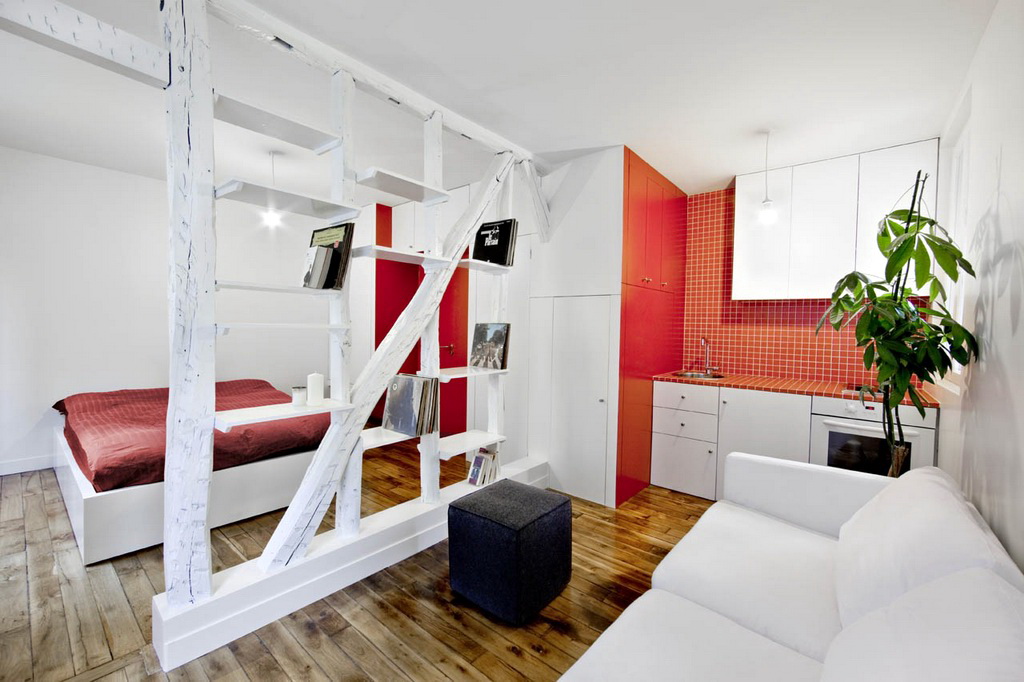 A significant drawback of the open plan is the almost complete lack of privacy. If several people live in the studio apartment, such a need will certainly appear. You can solve this problem by purchasing a mobile Japanese screen. It is inexpensive, easy to fit in a large wardrobe, on the balcony.
