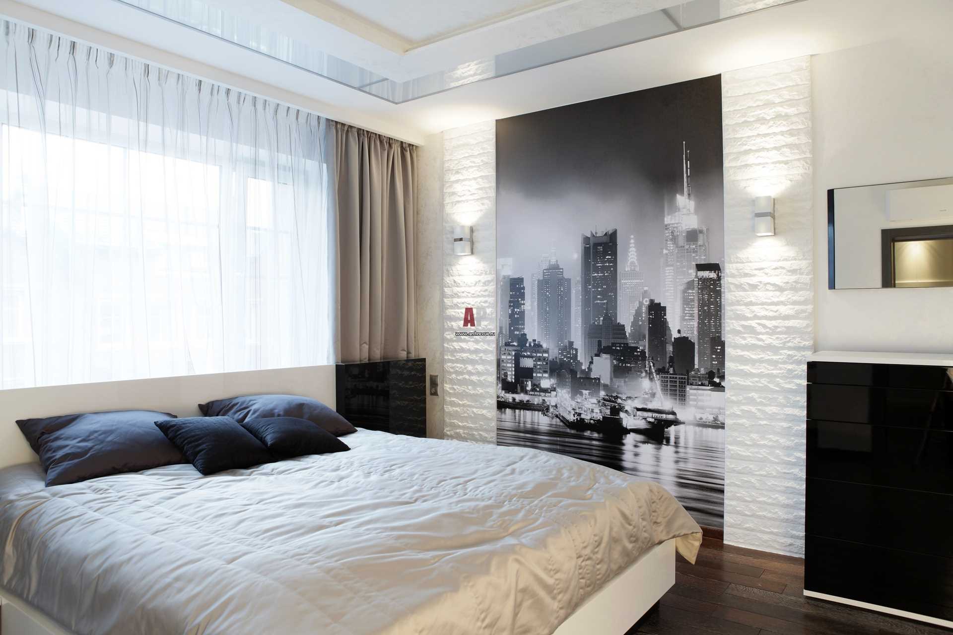 The combination of white and black in the interior of the bedroom looks very beautiful and unusual