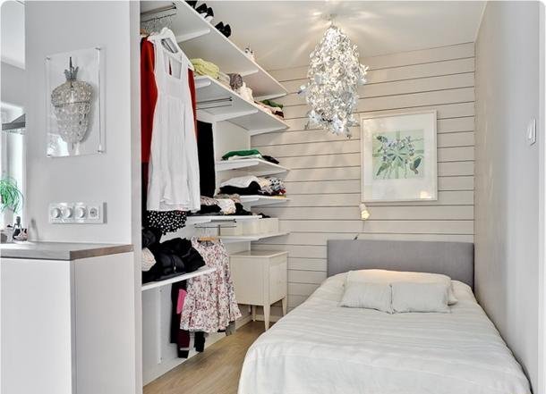 Due to the small space of a small bedroom, the amount of furniture for it must be minimized.