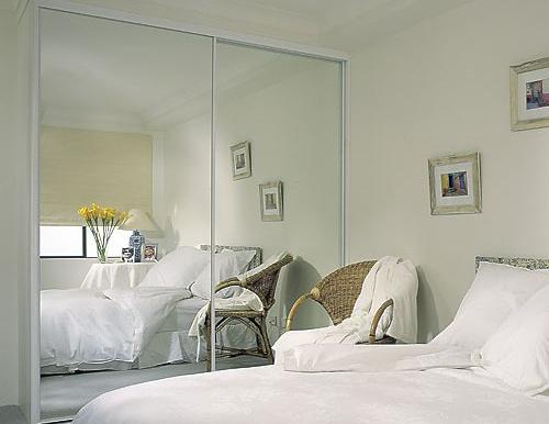 - Facades of a sliding wardrobe can have mirror inserts or are completely executed from a mirror covering;