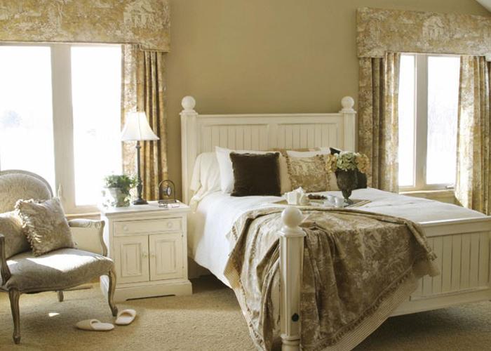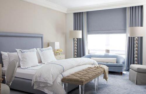 Warm shades are best used in a bedroom with windows to the north, cold will cool the room facing south a little.