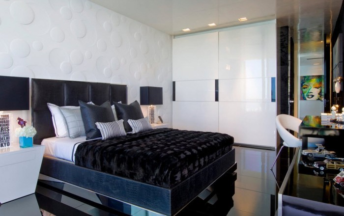 Many people do not wish use at light colors design, since they consider it not practical. Nobody wants to spend a lot of time cleaning bedrooms. Therefore, you can use other methods for visual augmentation. of space. Some examples are presented at a photo.