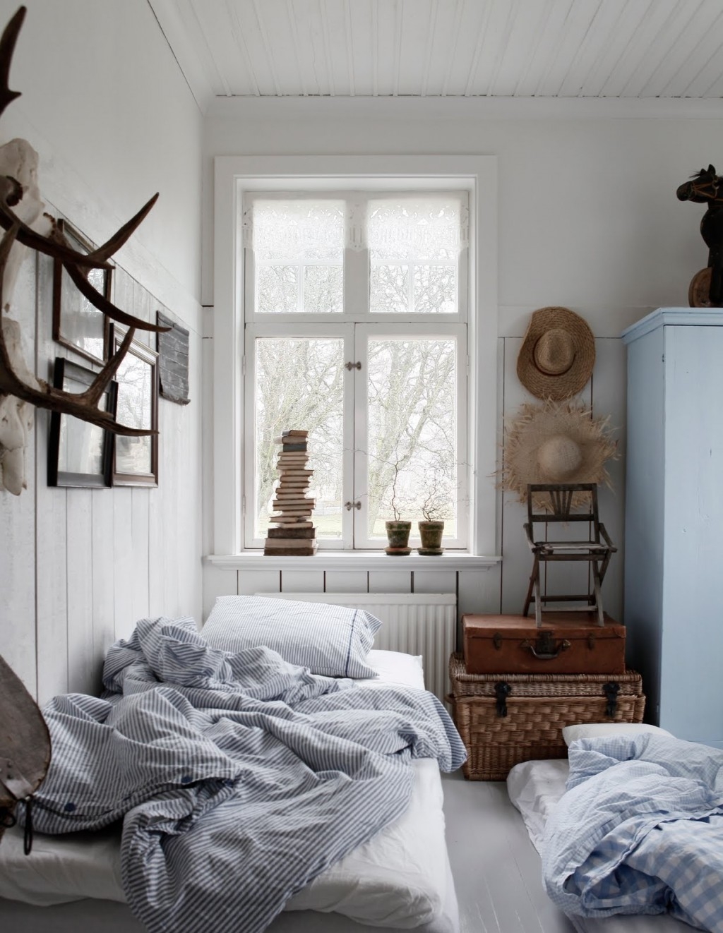 If bedside tables are needed, then they should not be much higher than the bed itself.