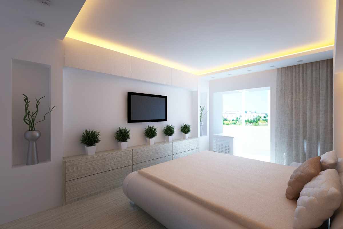 White color in the bedroom will visually increase its size