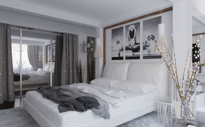 To visually expand space use light colors. The unchanging king in this case is white. For the bedrooms also great gray. Psychologists say that it positively affects the human nervous system, and contributes to full recovery. So, we advise you to pay attention to this color.