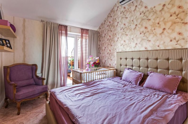 Design of a matrimonial bedroom with a nursery it is necessary to organize so that everyone feels comfortable and relaxed. The place of sleep of the crumb should not be made a central element.This space is primarily owned by adults.