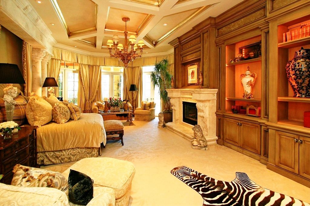 One of the common elements is modeling, embodied on the ceiling and walls. It is recommended to use metal fragments that imitate stone and bronze. Wall decor should be rich. Cross painting, decoration using natural fabrics will do. Also gilded wallpapers and wood panels. Many decorative elements such as vases, paintings, sculptures are welcome.