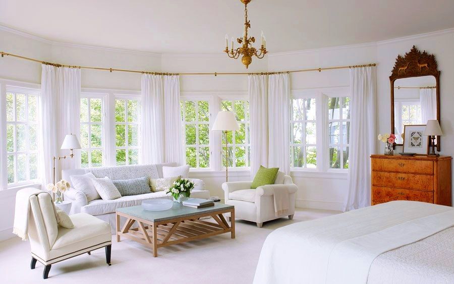 The bay window is a niche that creates an additional place for relaxation or work. Having placed soft chairs, a small table, you will get a cozy island. You can take a place to work in the bay window. Thanks to the natural light, there will be an excellent small study. The key decoration of the zone will be curtains. Textiles will become a bright accent. Placing the cornice under the ceiling, it will visually increase the height of the room.