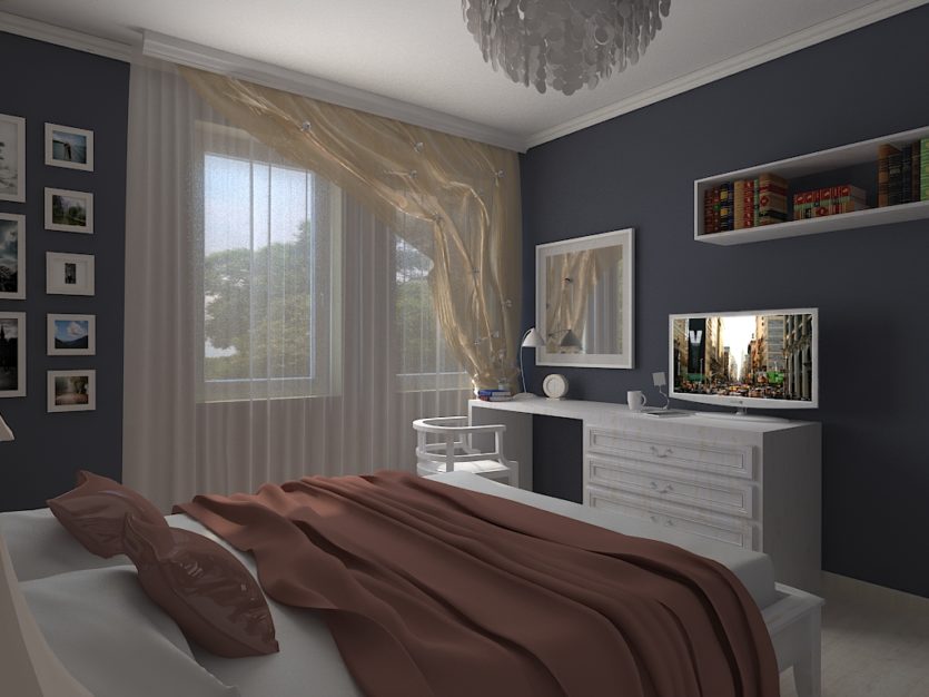 Bedroom Design 10 sq m the planner’s fantasies aren’t particularly clear up, as this space is enough only to place all the most necessary pieces of furniture in the interior. The project can be outlined with a pencil and paper. It’s worth starting from the bed. It is she who is the central element of the bedroom, and the arrangement of other pieces of furniture depends on its location.