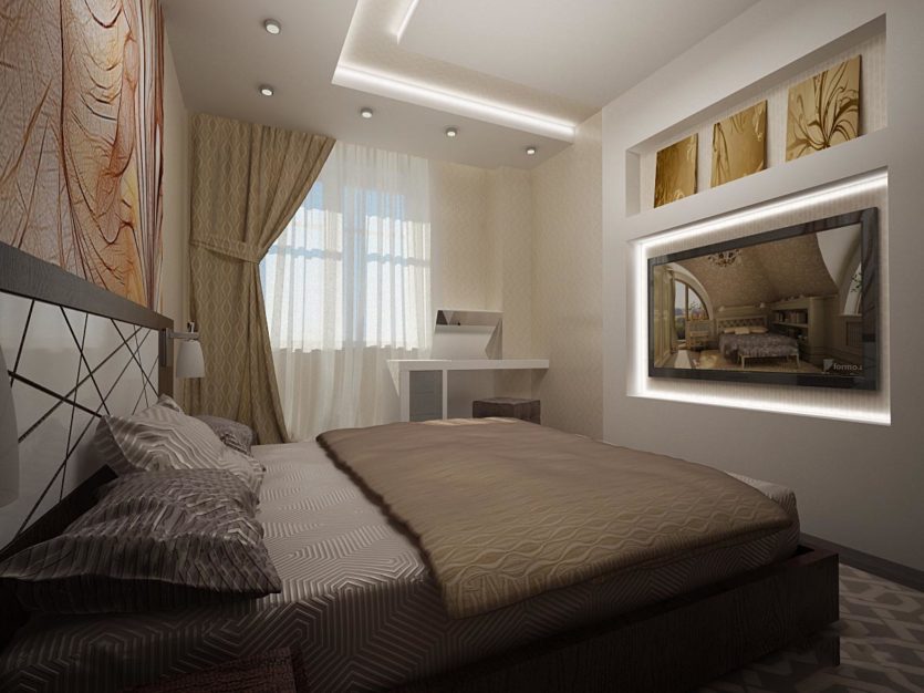 Proper lighting can work wonders, and bedroom design 10 sqm m requires its proper organization. Modern technologies allow not only to provide the necessary level of illumination in every corner of the room, but also to regulate the brightness of light sources.