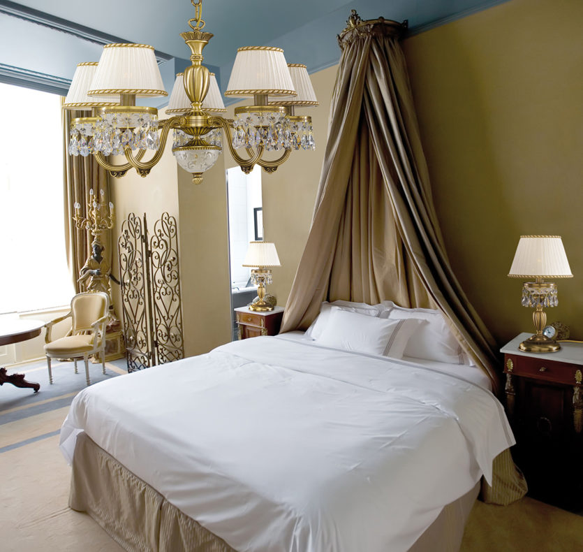 Original chandelier giving the effect of stars on the bedroom ceiling