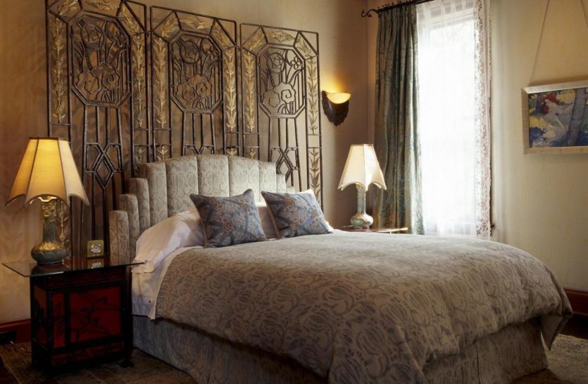 It can be an elegant wrought-iron bed under the beautiful design of the bedroom, as was fashionable in the modern era of the early twentieth century.
