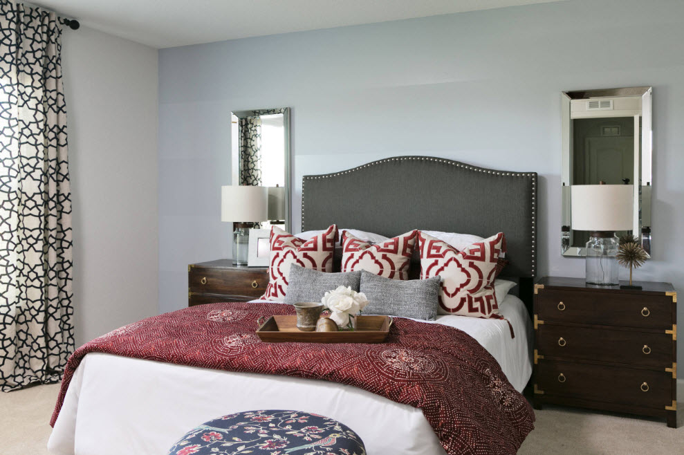 Important! Remember that the bedroom should relax, calm, and not activate brain activity. Bright accents can be placed at the head of the bed so that there is no strain on the eyes before going to bed.