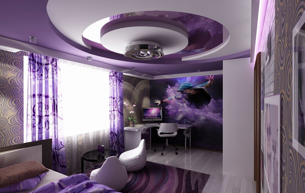 Ceiling will be the final accent, but often they are the main decorative element. Therefore, do not rush to paste it on the ceiling wallpaper or just paint it white.