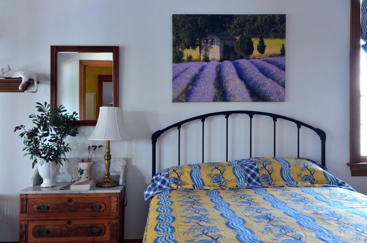 Provence and other country-style styles include wooden beds, patchwork quilts and colorful bedding.