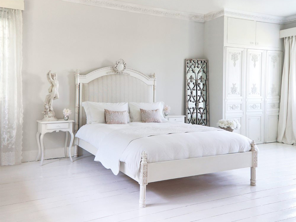 Light pink accents in white Provence style bedroom