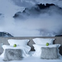 It happens, and vice versa, the rays of the sun from the east fall into the bedroom and wake the inhabitants, preventing them from getting enough sleep. Then, in addition to dense curtains, you can glue wallpaper with a landscape, which depicts a landscape with diffused light or rainy weather.