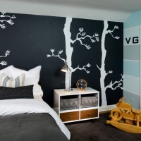 This option looks advantageous if the walls are white or milky. With dark walls, this option will be heavy. It is better to stick such wallpapers behind the bed. In this case, they will not tire the eyes. And still with black color it is necessary to be careful.
