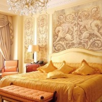Muted and soft shades resembling a fresco, as well as calm pastel shades look the best in a bedroom. Cute pensive angels at the head of the head or antique plots will decorate the room and add the charm of the Italian Renaissance.
