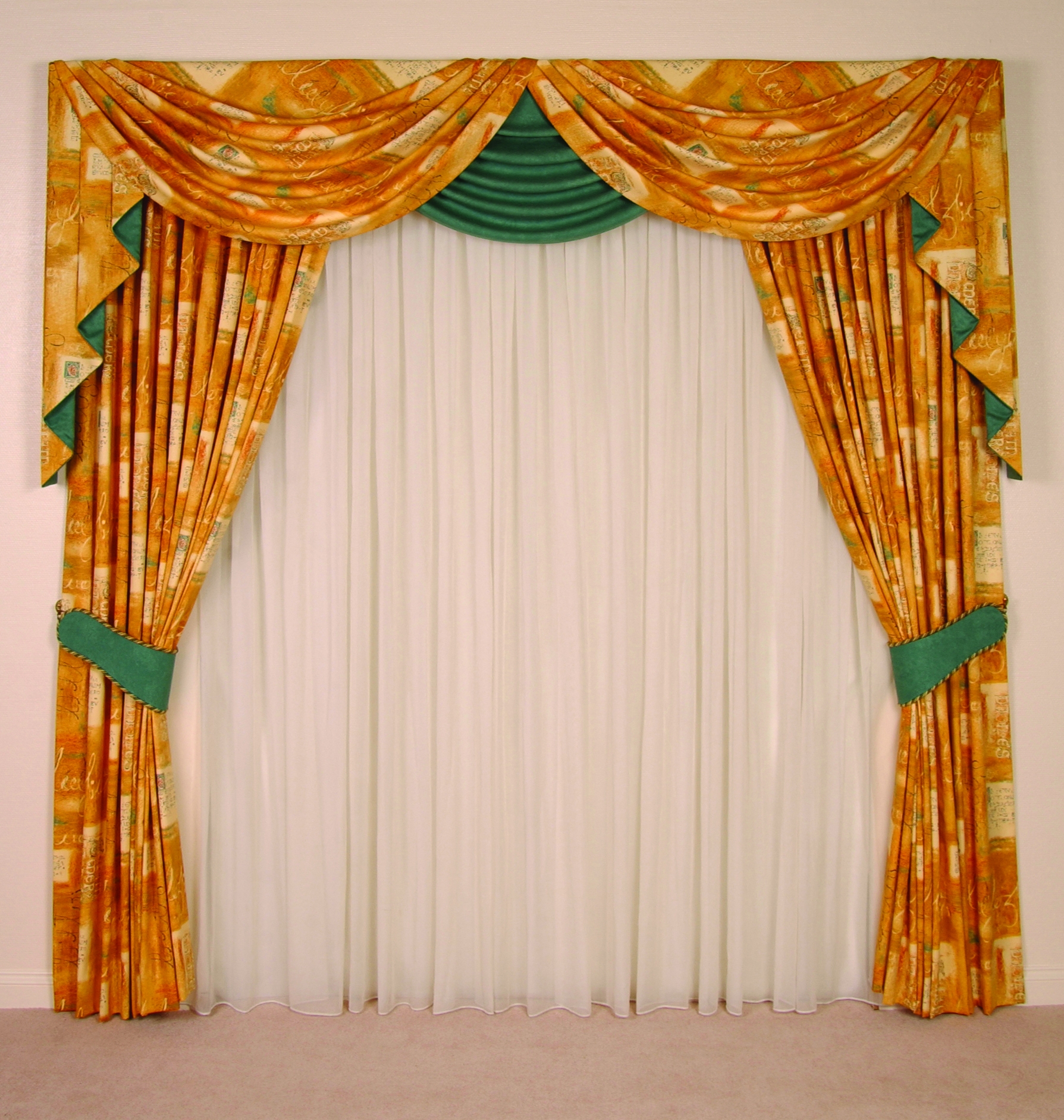 - Corrugated finish de jabot, consists of numerous clear folds hanging spontaneously. They can be decorated with fringe or brushes.