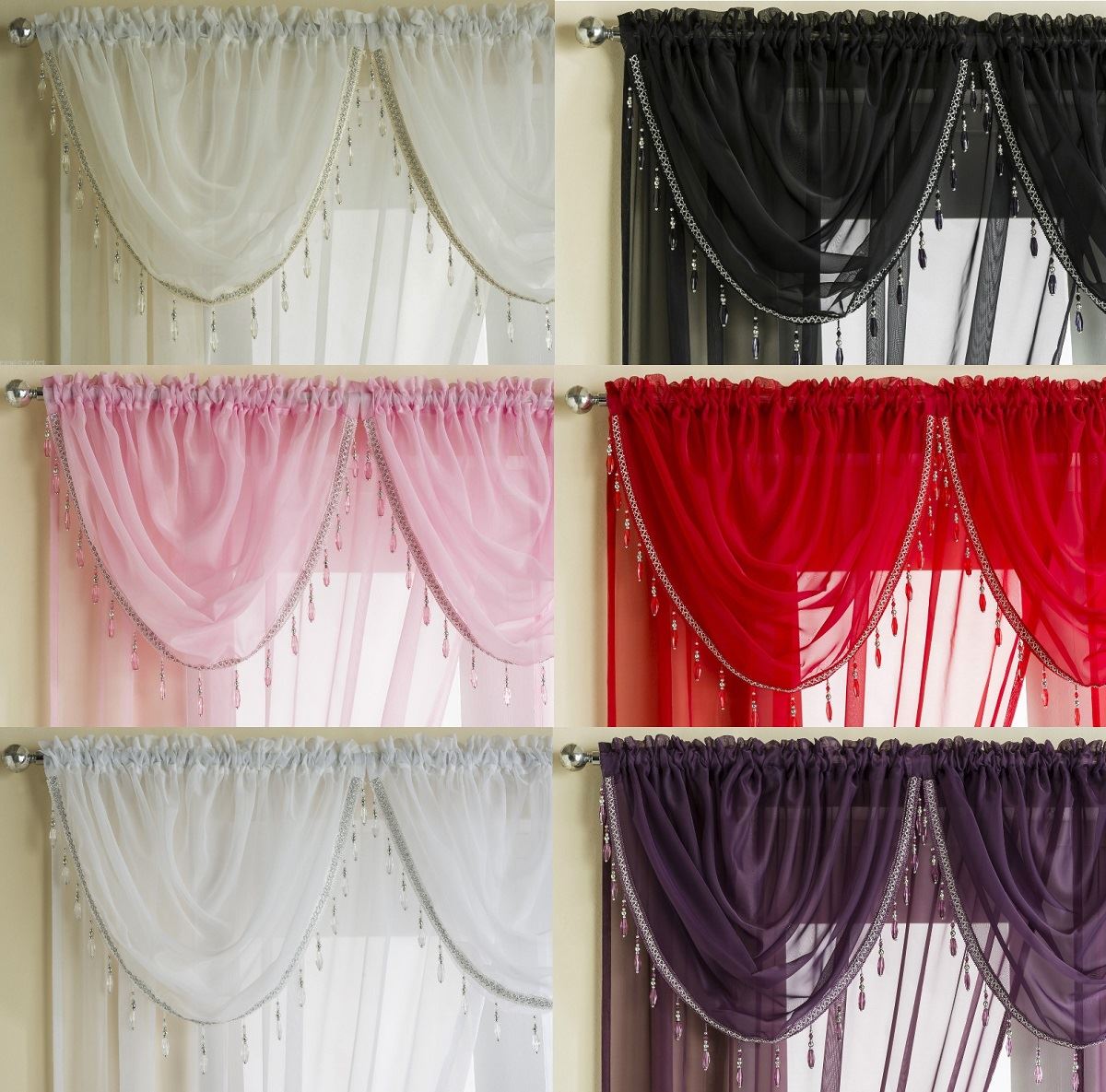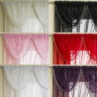 It belongs to a separate type of curtain flap. Such a design can be thrown over the cornice one or more times. Its ends are made out in any of the options described. In comparison with swag, peroxides have an empty sag, into which another one is made, made of another material. This design looks great in two-row compositions consisting of various colors. A piece of cloth of gentle soft tones thrown over the rod of the cornice will make the room unique.