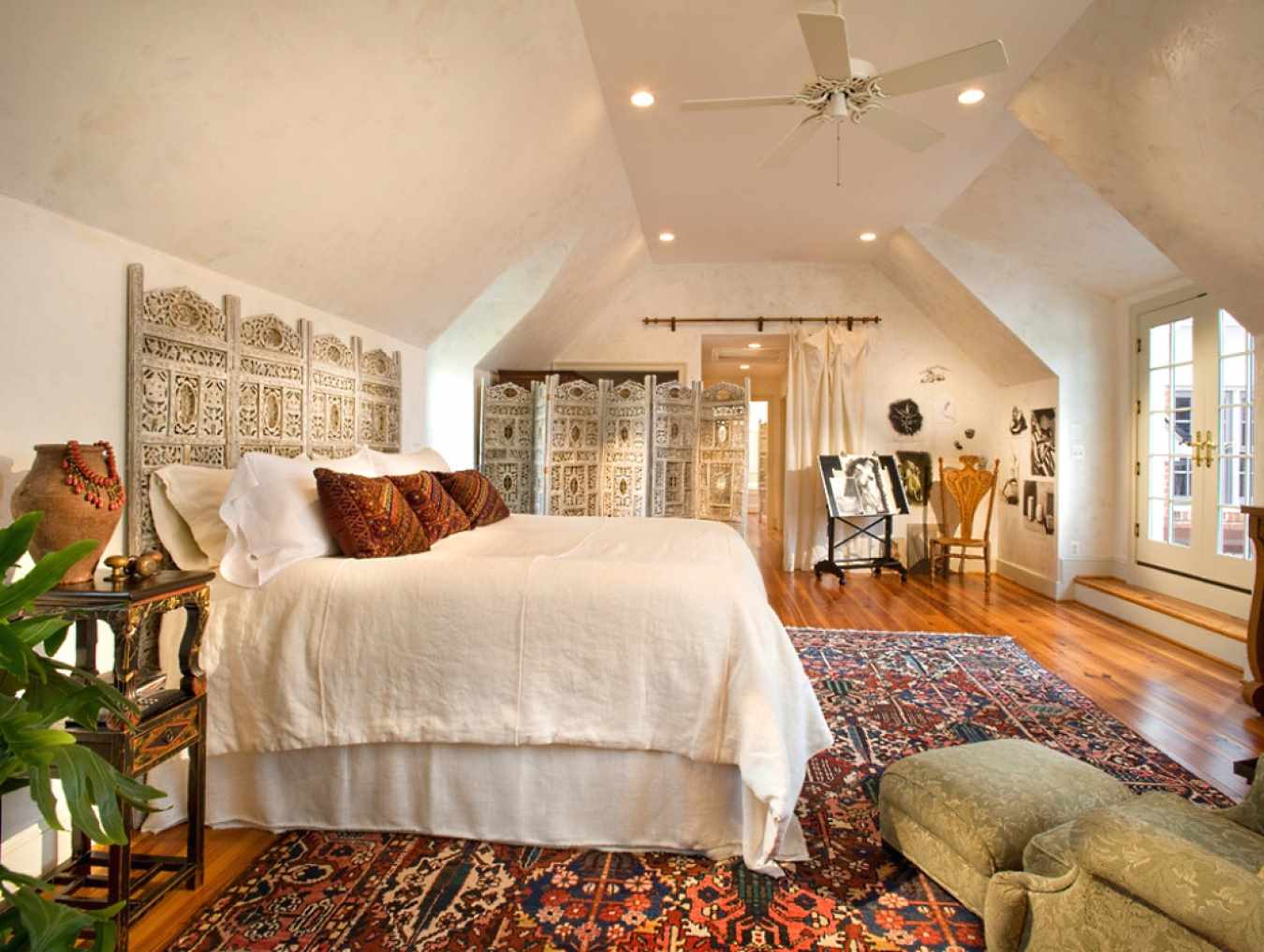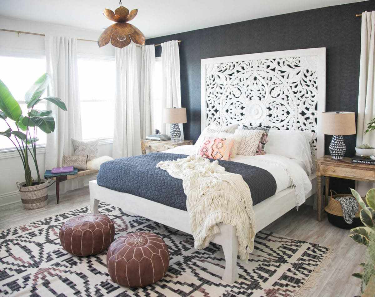 When designing the headboard in an eclectic style, try to avoid sharp corners
