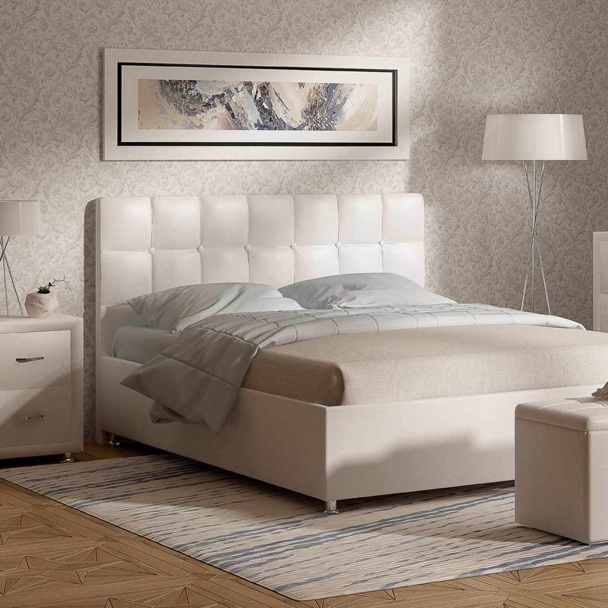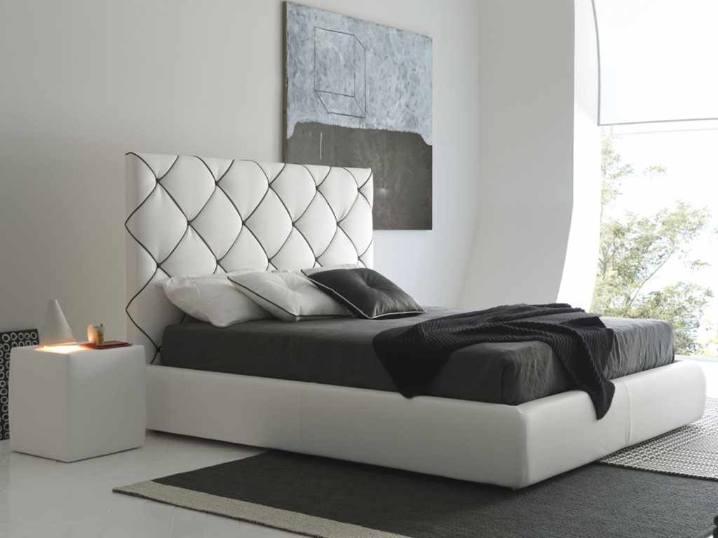 The headboard covered in ecoskin will look great in the interior of the bedroom