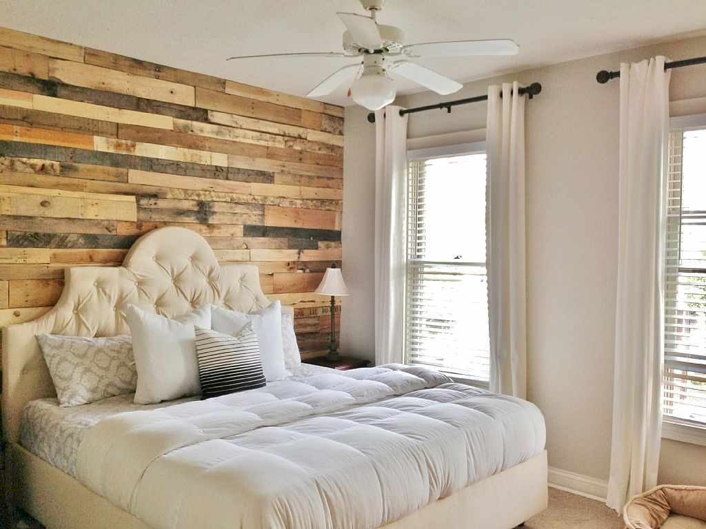 The texture of the panel can be made of wood. They are mounted vertically on the wall by the bed with the entrance to the ceiling. This technique favorably emphasizes the bedside zone. An artificially aged board, or one that has long served and is now useful, gives the room a vintage look that matches the rustic style, and this is the naturalness, naturalness and simplicity of a village house.