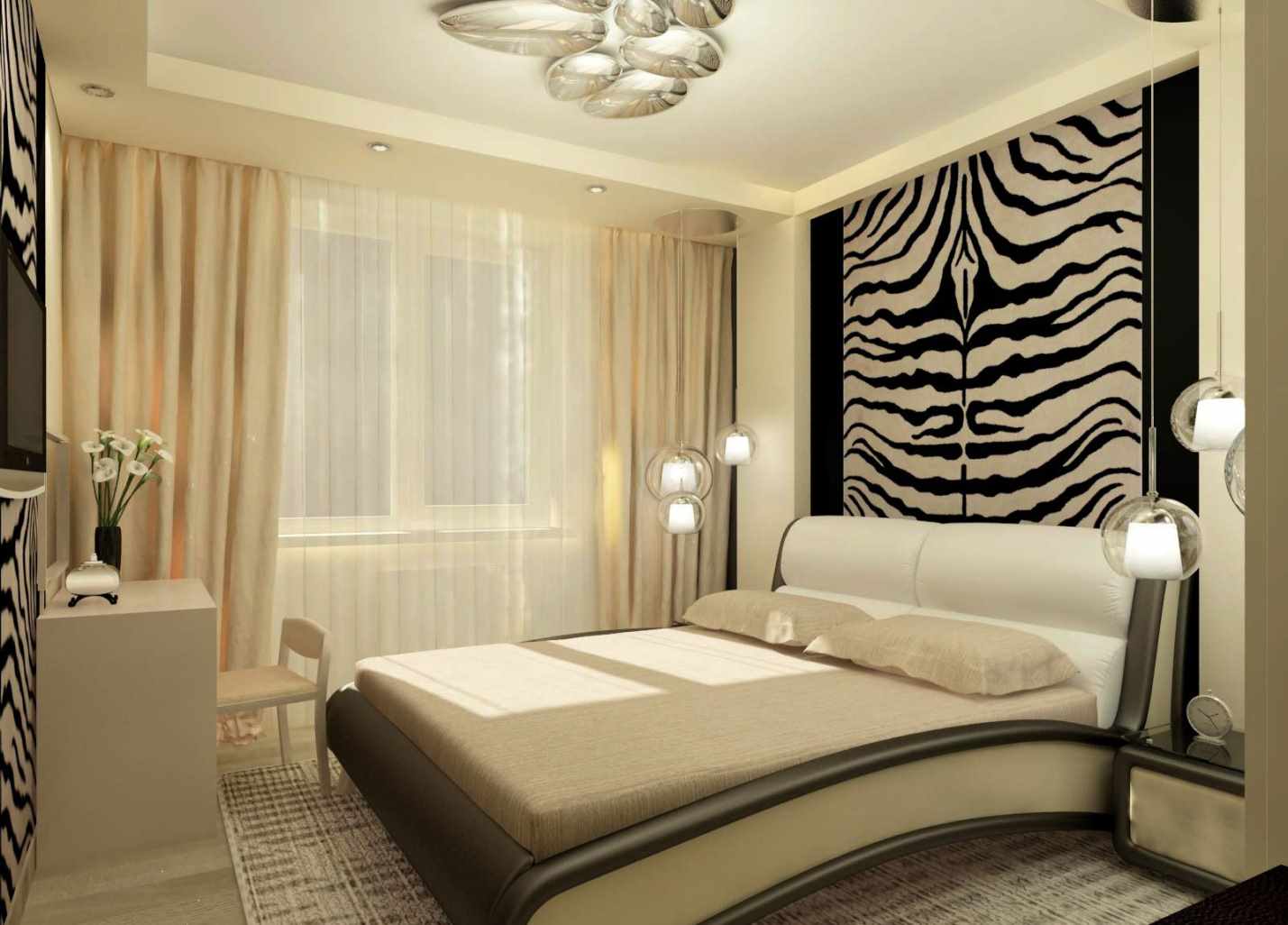 The purpose of the bedroom in the house is to provide its residents with a private space for night sleep, privacy and relaxation from the hustle and bustle of the day. The decoration of the bedroom should have an atmosphere of calm and conciliation. Properly selected furniture, textile elements, curtains, soft lighting, dim color scheme of walls and interior items will contribute to this.