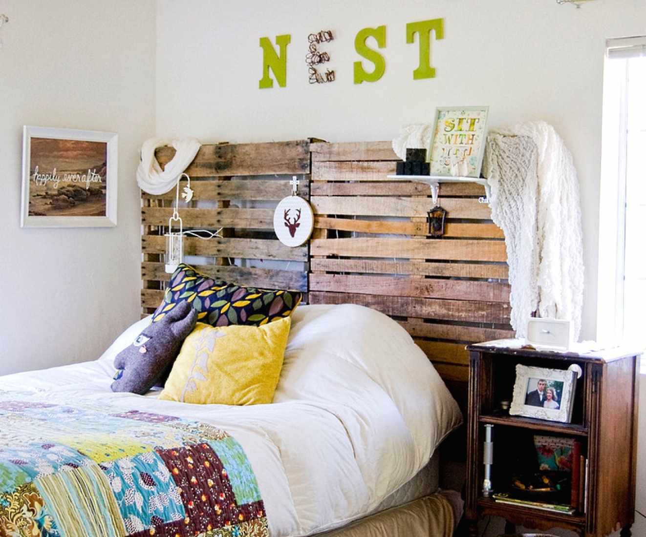 The headboard can be made from old things.