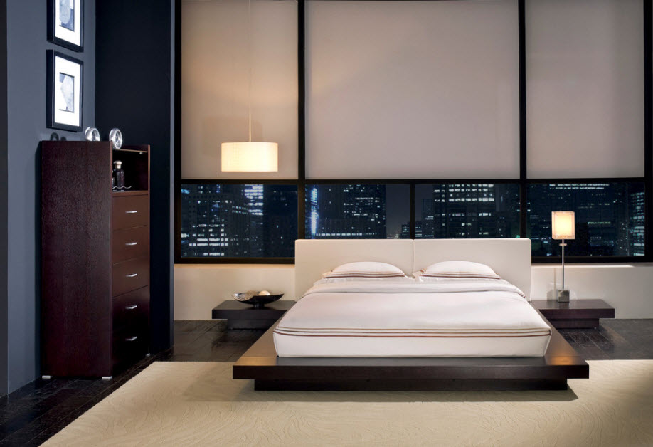 It is not recommended to design large surfaces of the bedroom in dark colors. The gloomy decoration of the walls and ceiling will crush, negatively affect the mood. It is strictly forbidden to install a lot of furniture. A large number of interior items will deprive the room of usable space. Leave only the essentials.