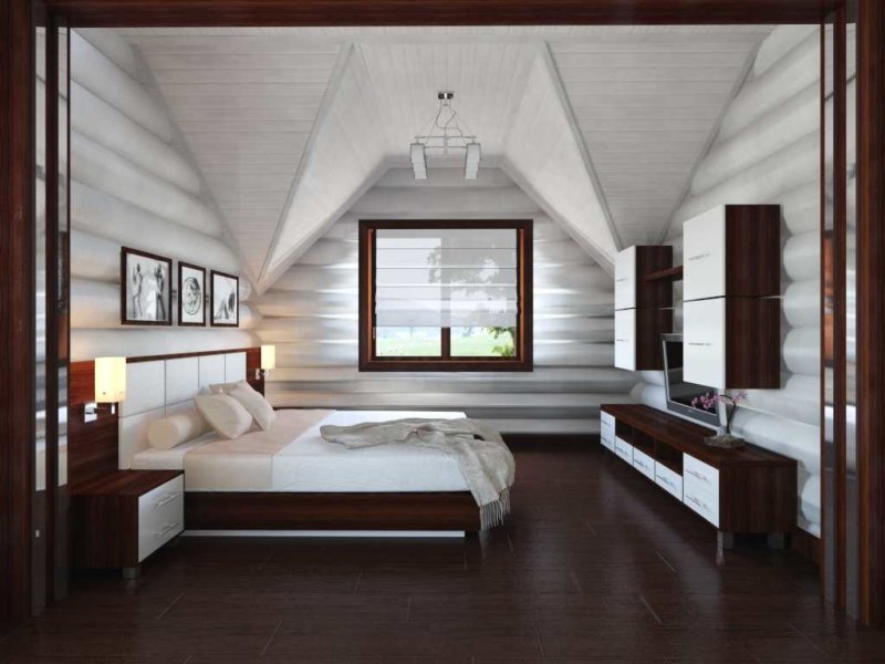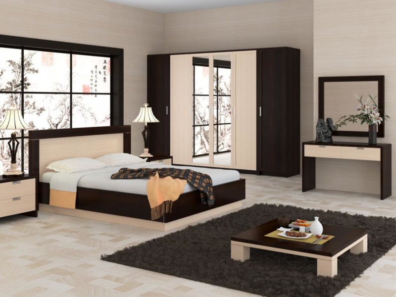 - The design of a bedroom with dark furniture will never go out of style. This is a classic solution.