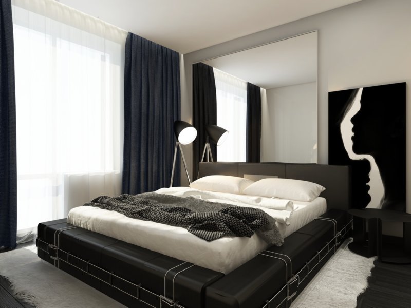 | Technostyle | Perfect dark bedroom style. Technostyle is highly practical, functional. Suitable for modern young families. Furniture needs to be bought in black with chrome details. Repeat chrome surfaces can be in the decor of the fixtures. |