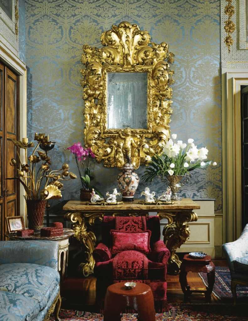 To avoid the monotony of the walls, you can decorate them with frescoes, tapestries, lamps, paintings, stained glass windows or paintings in massive frames painted in the spirit of the Renaissance masters.