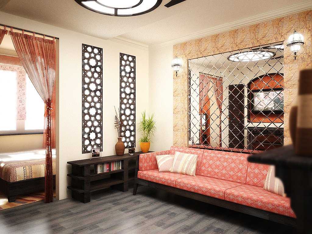 Fancy forms of furniture should be avoided: only simple shapes and smooth lines. It is possible to finish furniture items with iron parts or painted in white, red, brown or black.