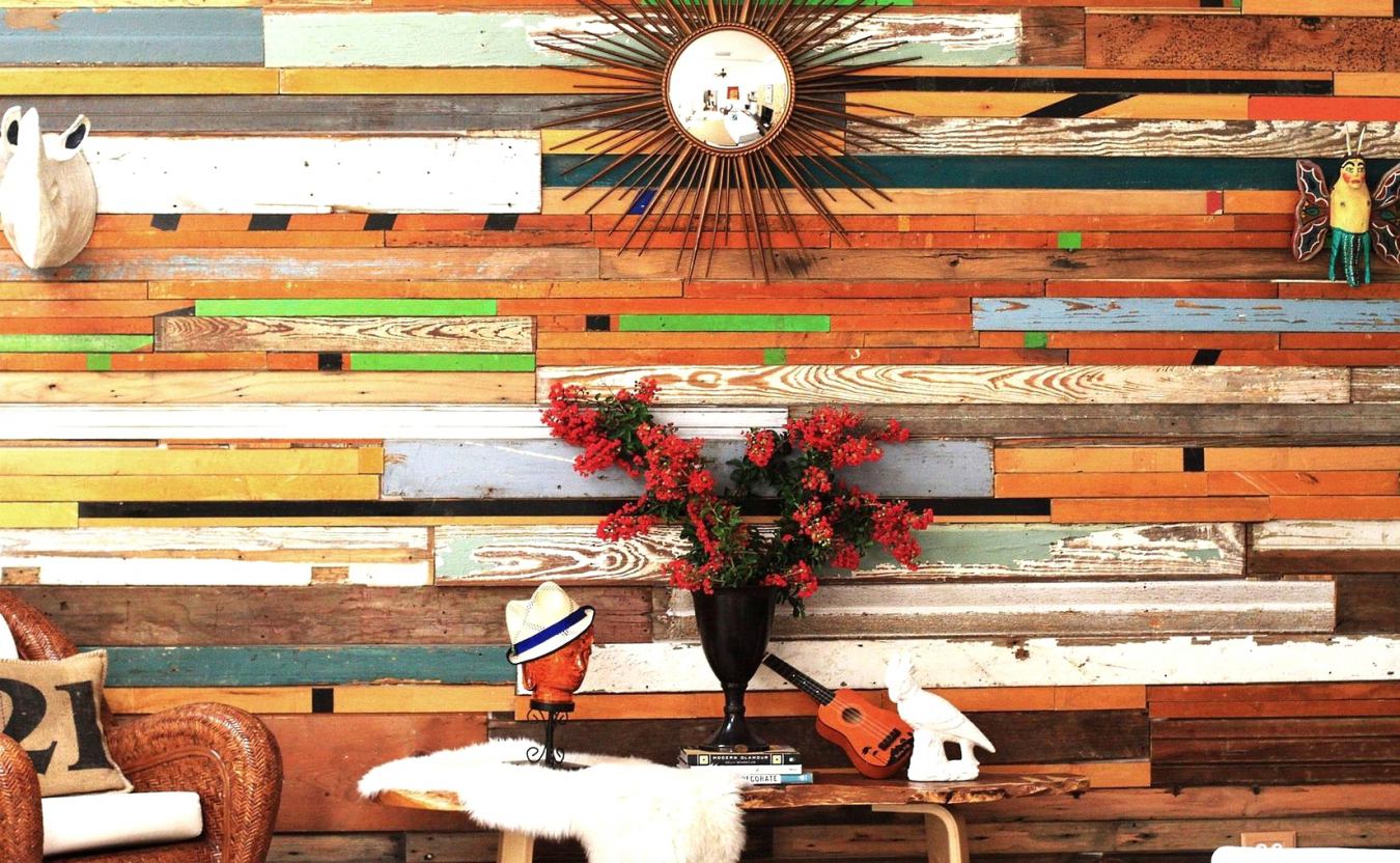 Interior items created from boards of different shades and sizes look beautiful and unusual.
