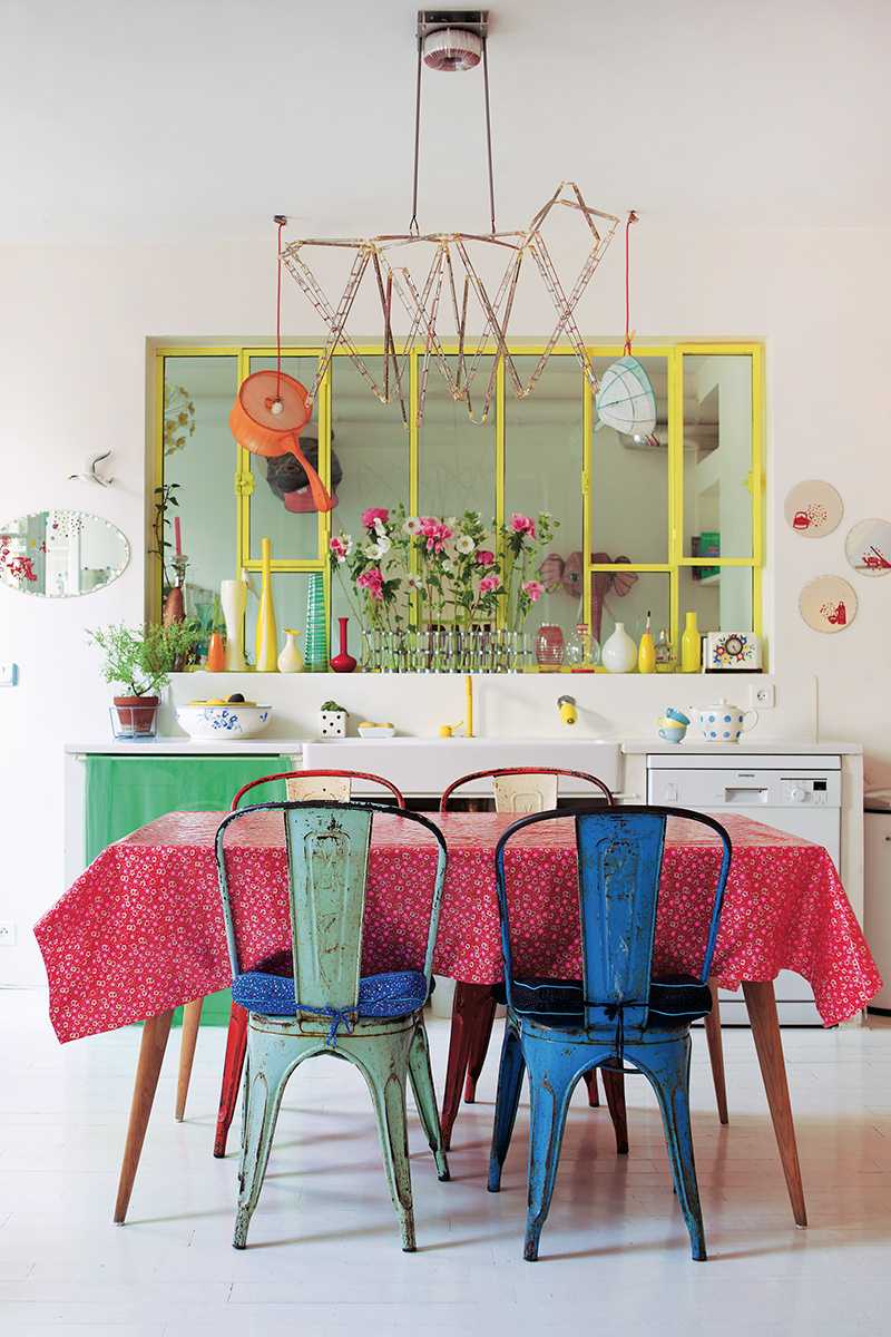 Creative chaos should prevail in the kitchen. Therefore, the dishes you need to buy are not of the same type and, of course, the most daring shapes and colors. Do-it-yourself earthenware pottery will be a great touch (now many companies offer similar master classes). Also, a great addition will be the presence of a variety of cones, jars and other, at first glance, useless items.
