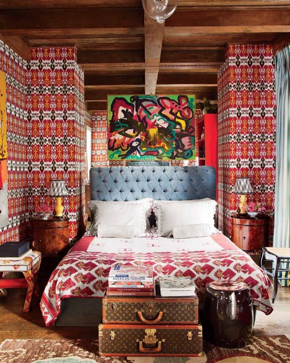Red color in boho style room design