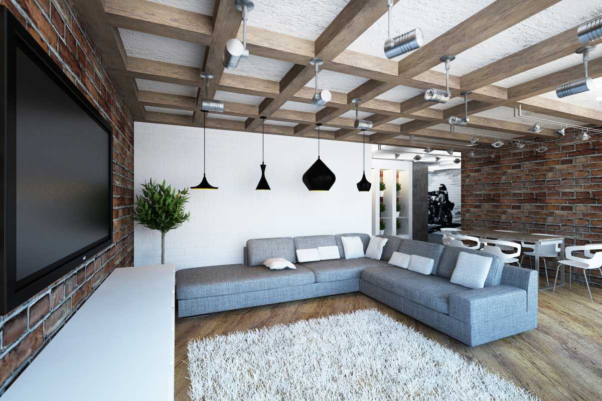 Loft style in the interior of the living room